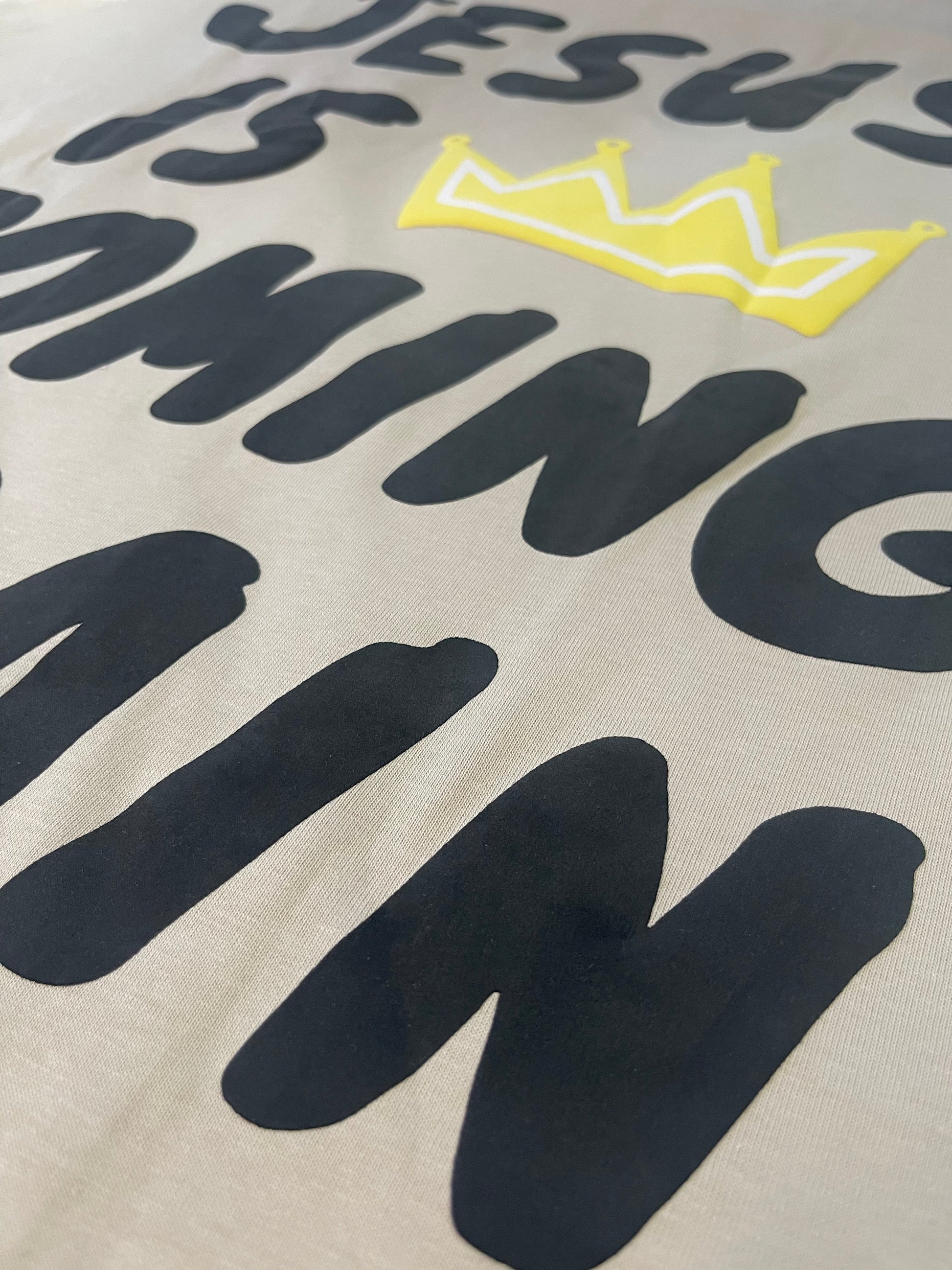 -JESUS IS COMING AGAIN (Large Puff Print) on Center back